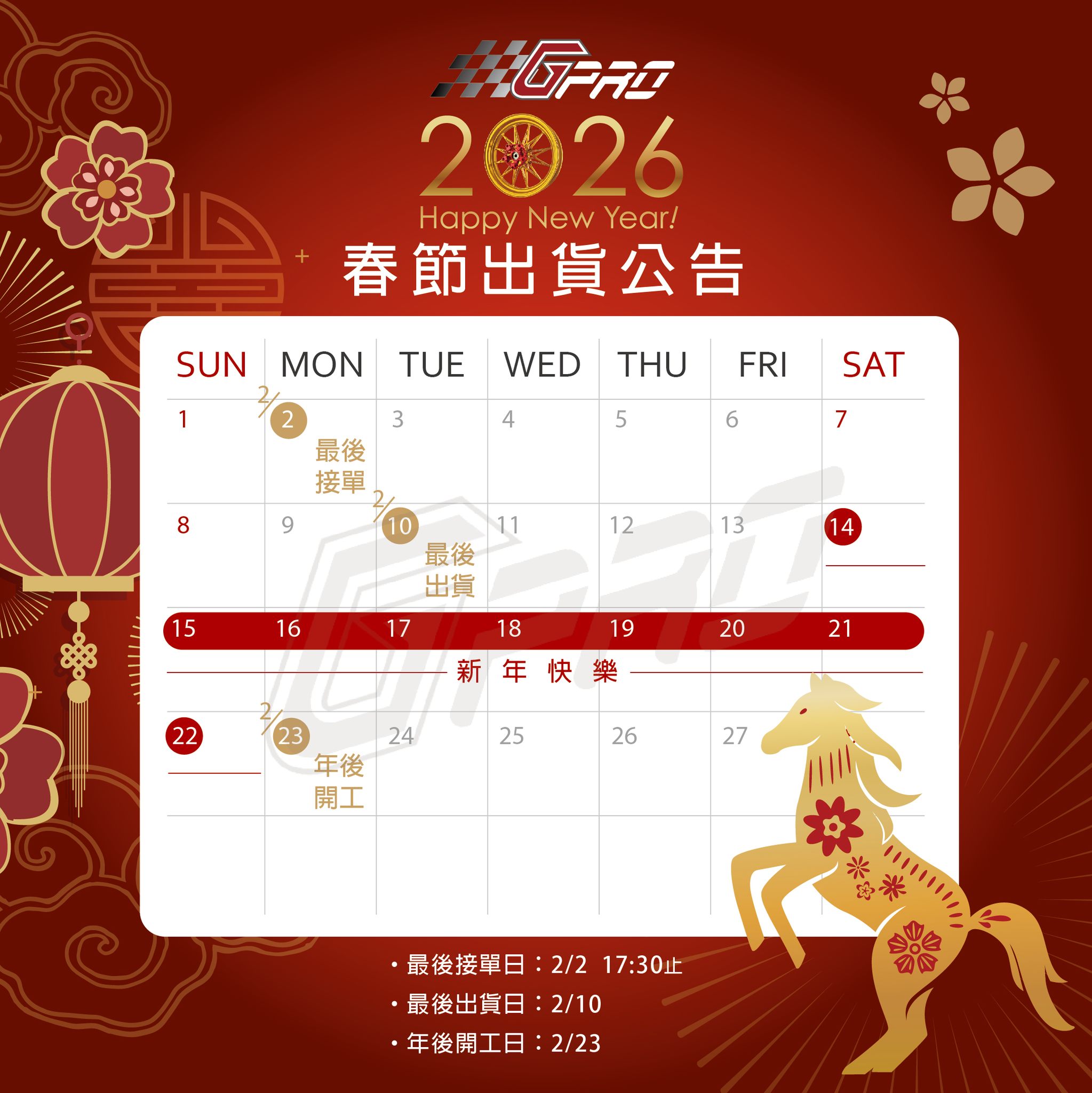 農曆年前出貨通知