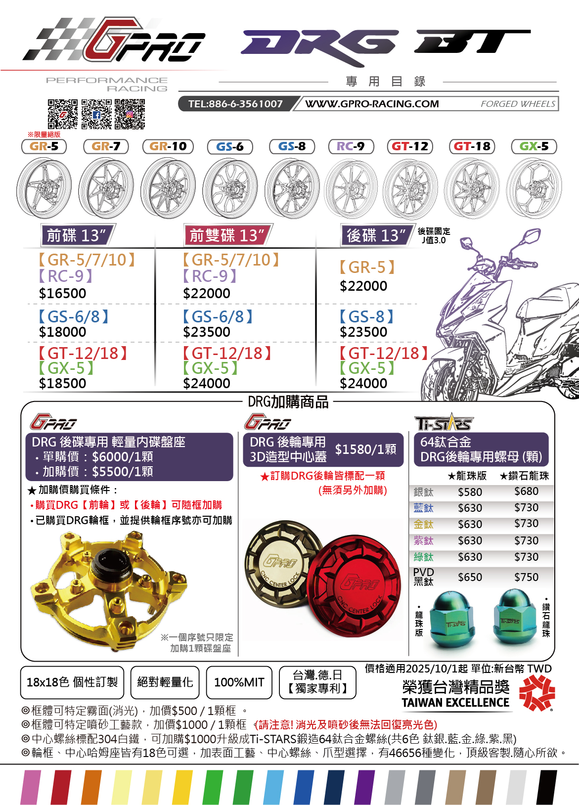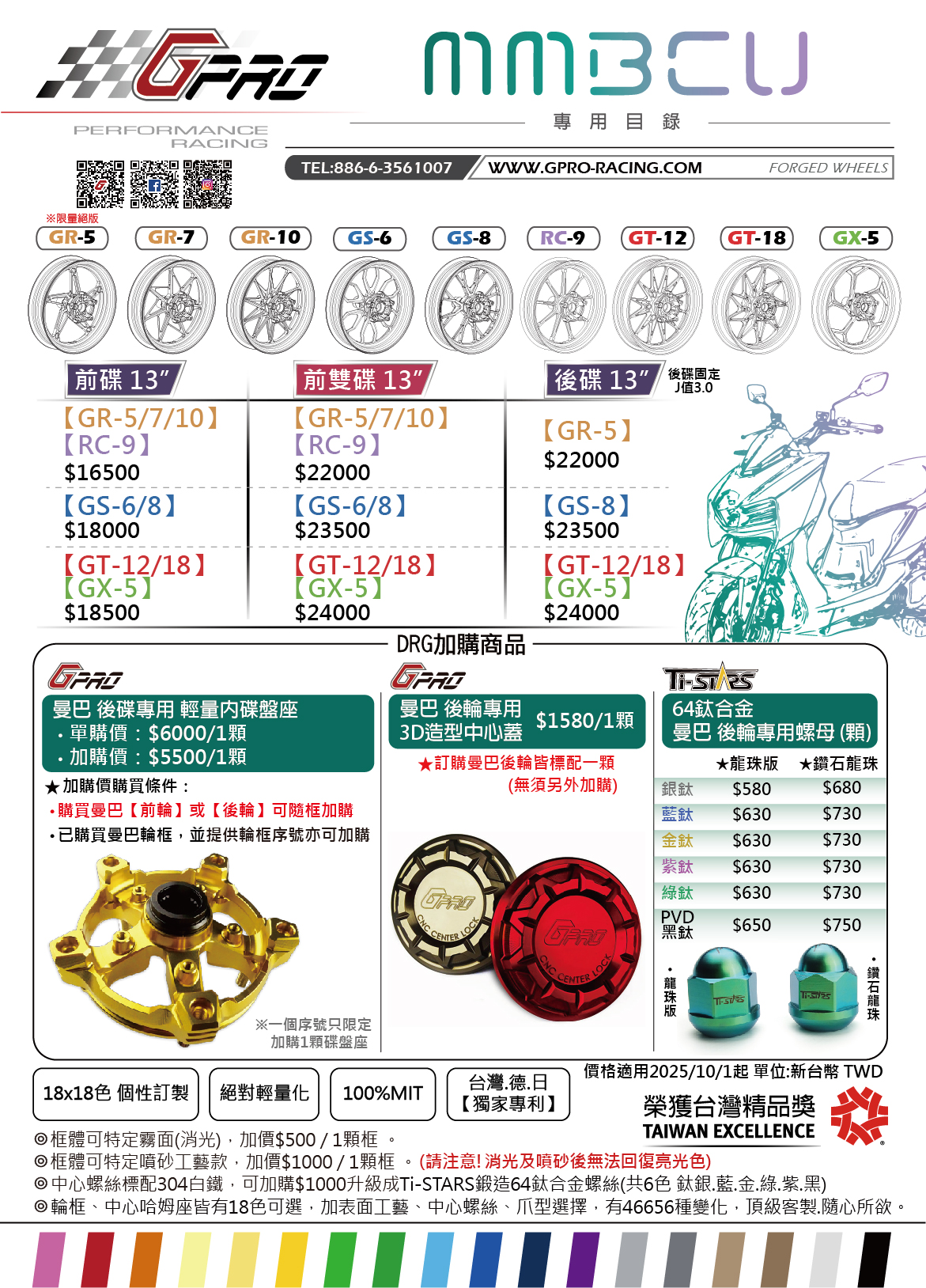 輪框&哈姆顏色:紅 / 橘 / 深金 / 淺金 / 香檳金 / 綠 / 青蘋綠 / 深藍 / 淺藍 / 普魯士藍 / 紫 / 粉紅 / 深鈦 / 淺鈦 / 深灰 / 淺灰 / 黑 / 銀